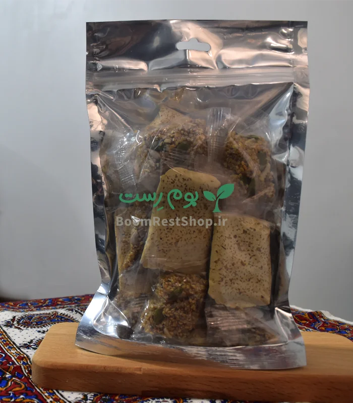 محصول “میکس لقمه ای بوم رست” از دو خوراکی شکر کنجد لقمه ای و حلوا کنجد لقمه سیلونی است.